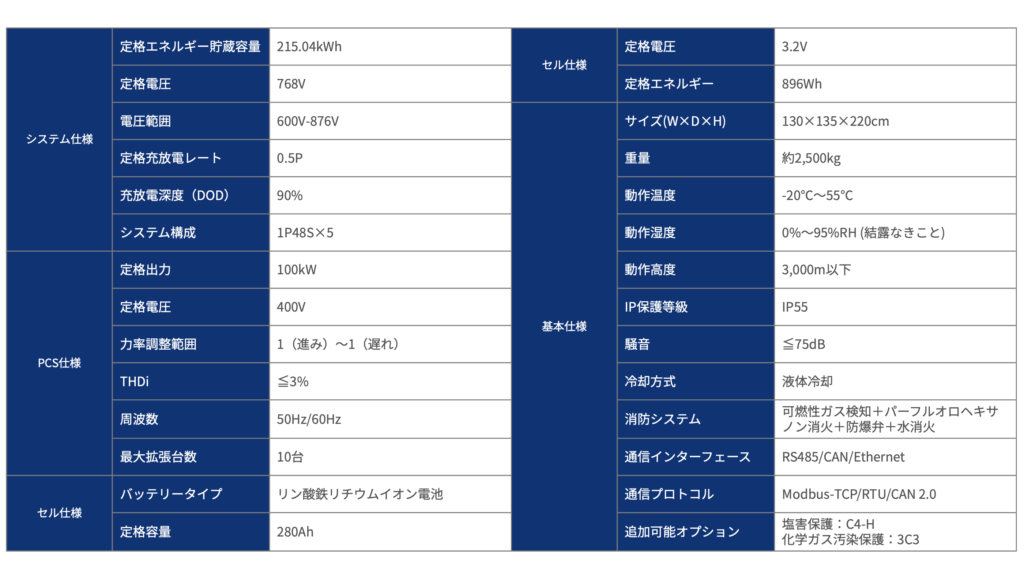 215kWh 産業用蓄電システム
